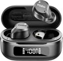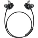 Small, in-ear headphones for listening to music, often used for exercise or commuting.