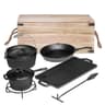 Heavy-duty, heat-retentive cookware for stovetop, oven, and outdoor cooking.