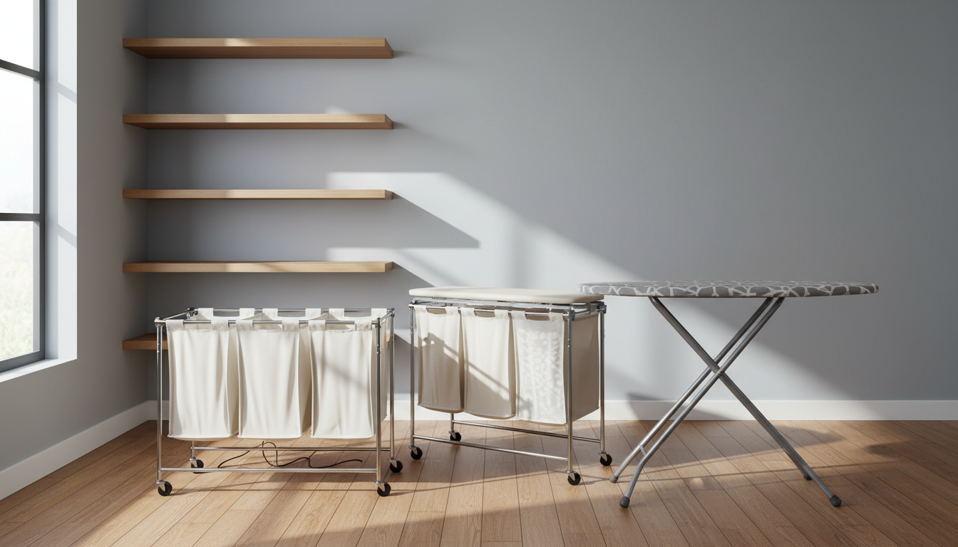 The Whitmor 3‑Section Rolling Laundry Sorter is a compact, collapsible unit with three removable canvas bags and heavy‑duty locking casters, designed for easy sorting and transport of laundry in small‑space living environments.