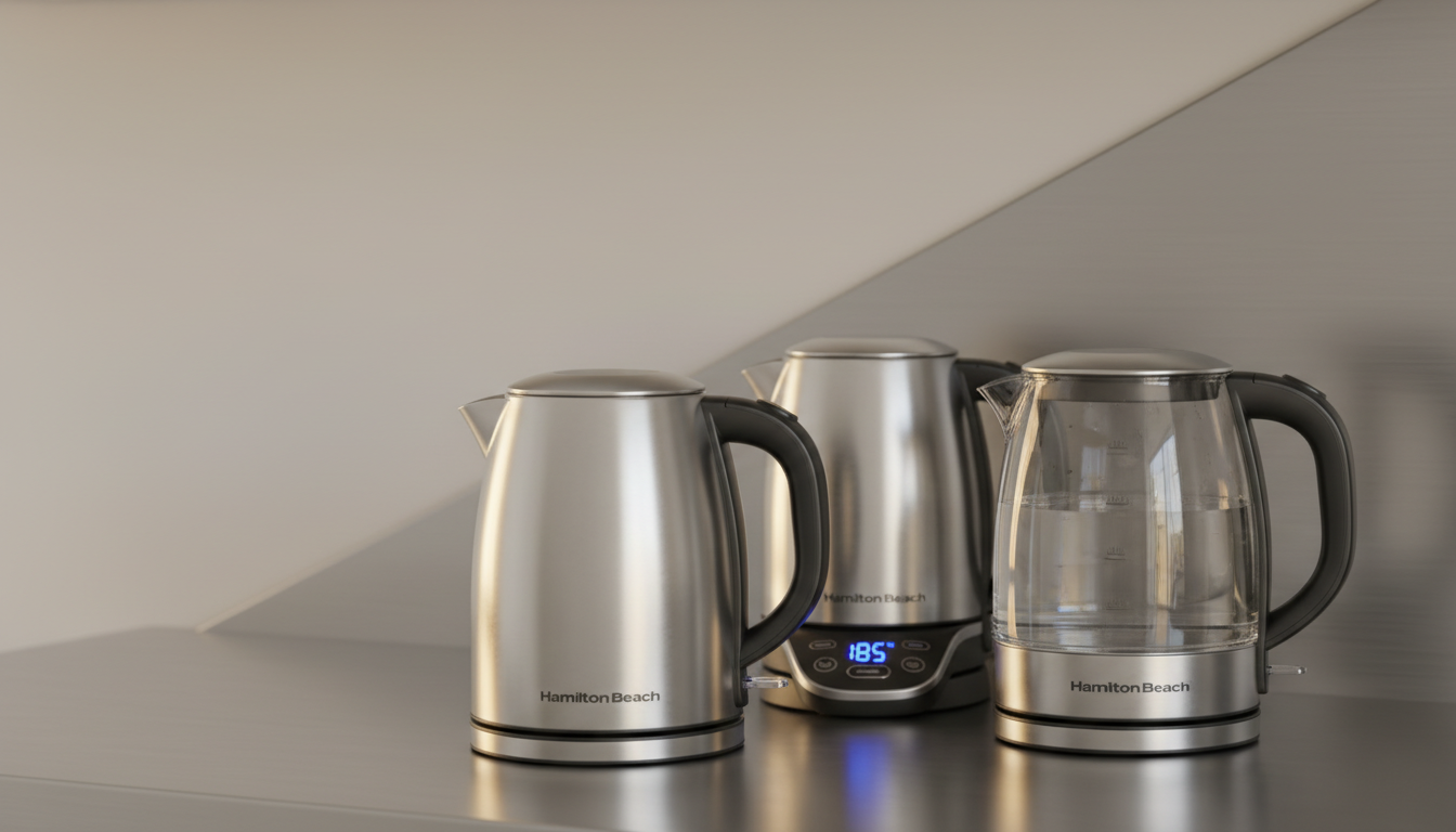 The Hamilton Beach Commercial HKE110 is a compact 1‑liter stainless steel electric kettle designed for hospitality use, featuring a concealed heating element, automatic shutoff with boil‑dry protection, and a cord‑wrap storage system for cordless serving.