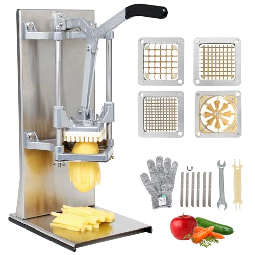 The Royal Giant Heavy Duty Vegetable Chopper (KTVC8) is a manual, chrome‑finished kitchen tool featuring a stable 3‑leg suction cup base and stainless‑steel shredders. Its compact footprint makes it suitable for countertop use, while dishwasher‑safe cones simplify cleanup.