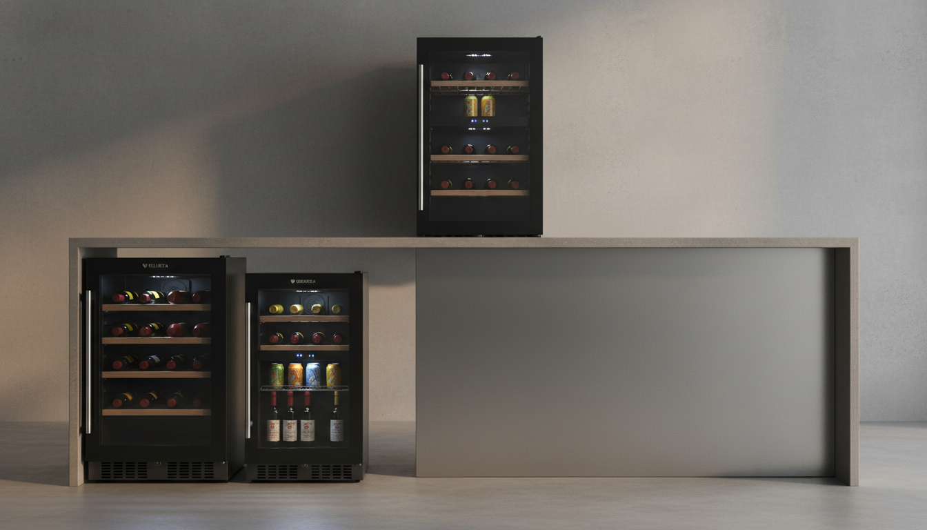 The Velieta KMYL30 is a 30‑inch stainless steel dual‑zone wine and beverage refrigerator offering separate temperature ranges for wine (41‑64°F) and drinks (35‑50°F). It supports flexible installation as built‑in, freestanding, or under‑counter and provides capacity for up to 33 bottles and 110 cans.
