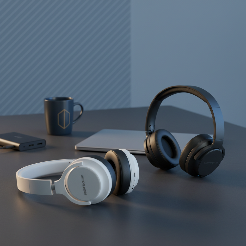 The Soundcore by Anker Q20i Hybrid Active Noise Cancelling Headphones are mid‑tier wireless over‑ear headphones that combine hybrid ANC, up to 40 hours of battery life with ANC on, and app‑based sound customization at an affordable price. They target commuters, travelers, and budget‑conscious users who want solid noise reduction and long‑lasting playback without a premium‑price tag.