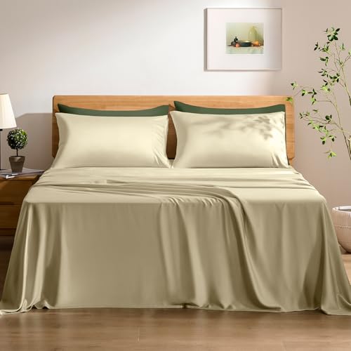 The Bare Home 100% Rayon from Bamboo Queen Sheet Set offers a silky‑smooth, moisture‑wicking fabric with a deep 15‑inch pocket fit, certified OEKO‑TEX for safety, and eco‑friendly bamboo sourcing. It is praised for cooling hot sleepers but noted for thin durability concerns.