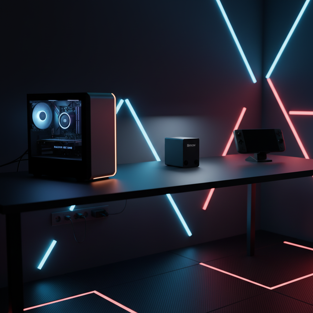 The BMAX B8A Pro is a compact mini PC powered by an AMD Ryzen 7 8745HS and Radeon 780M iGPU, delivering desktop‑grade performance in a 430 g, VESA‑mountable chassis. It supports triple 4K displays, fast DDR5 memory, PCIe 4.0 storage, and comes with Windows 11 Pro pre‑installed.